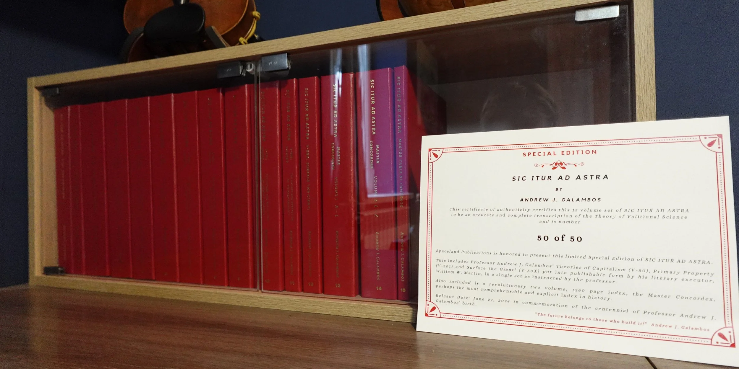 Astrophysicist and developer of volitional science, Professor Andrew J. Galambos, presented his theories of capitalism and primary property, along with over 115 other courses, mostly in the Los Angeles area of California from 1961 to 1989, to students from around the globe. Nearly 30,000 people attended his lectures, presented live and on tape through his Free Enterprise Institute. What follows is a necessarily brief history of the Institute, including the betrayal of the professor and his ultimate triumph thanks to his appointed literary executor, William W. Martin. This triumph would manifest itself, finally, in 2003 with the completion of Galambos’ magnum opus, Sic Itur Ad Astra (Latin for “This is the way to the Stars”), and in 2024 with its publication in book form. For a more exhaustive account, please see Orbit! by William W. Martin, Andrew J. Galambos; Betrayal and Triumph by Bill Cobb, and Andrew J. Galambos; and Publish or Perish by Bill Cobb in the Spaceland Publications bookstore.